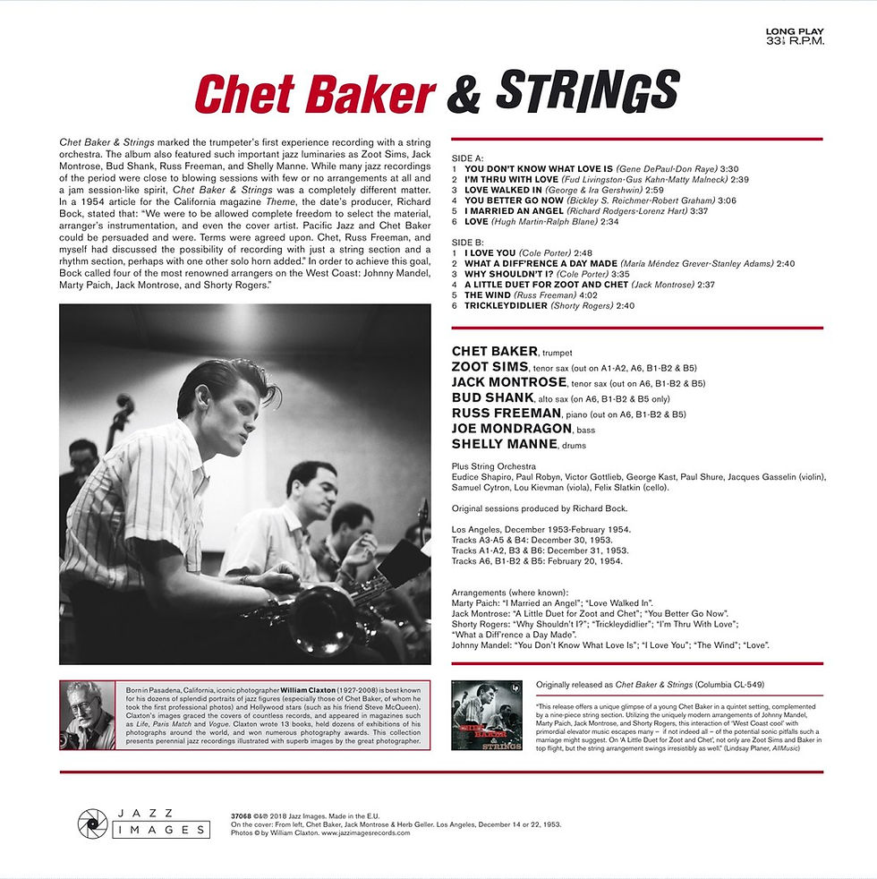 CHET BAKER LP Chet Baker & Strings (180 Gram Audiophile Vinyl) Gatefold Cover